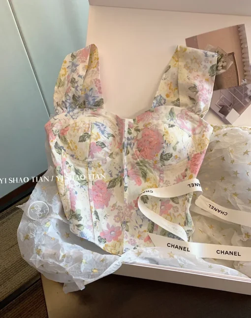 French Pure Desire Aesthetic Floral Tank Top Women’s Summer 2023 New Slimming Inner And Outer Wear Sweeter Spicy Top