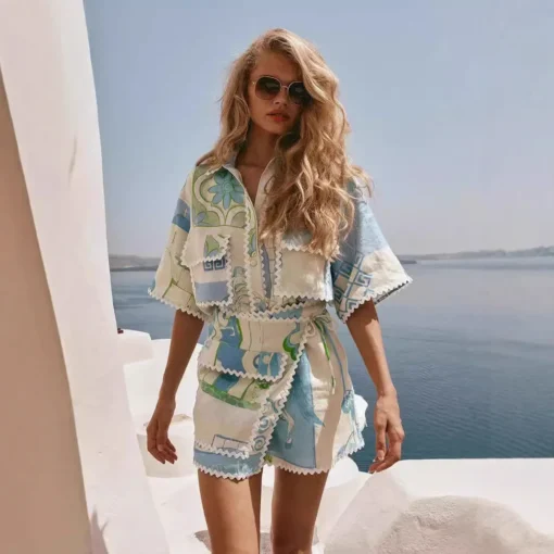 Fashionable Floral Print Ruffle Edge Women’s Outfit Set Elegant Versatile Skirt Ensemble from Mainland China New 2024 Model